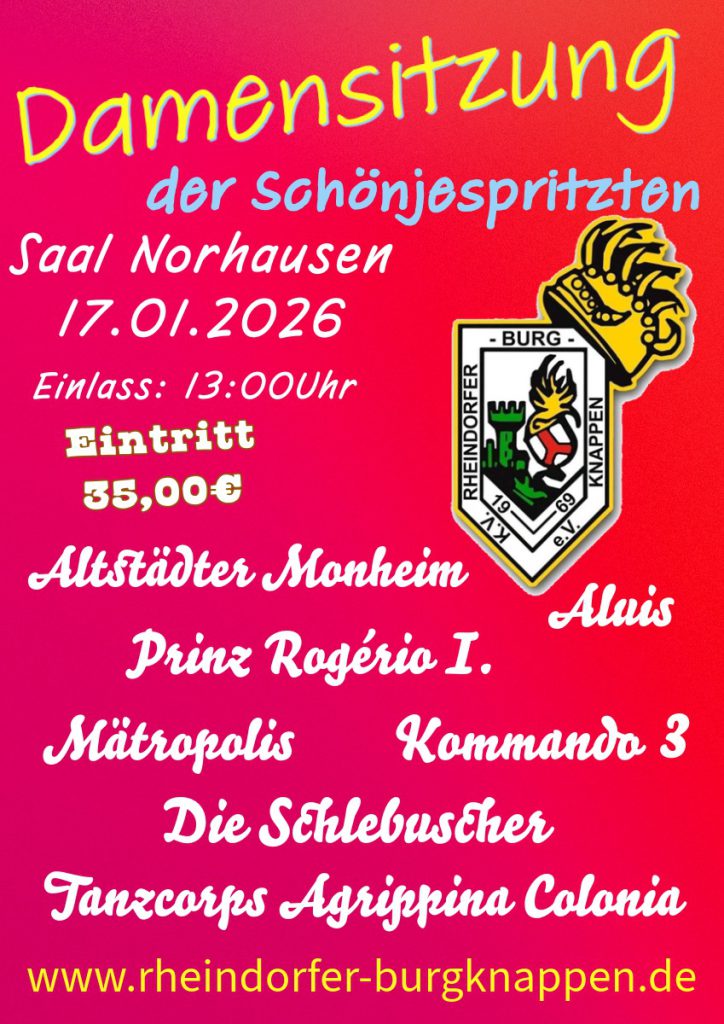 Weiter geht es am 17.01.26 mit der traditionellen Damensitzung der KC de Schönjetspritzte