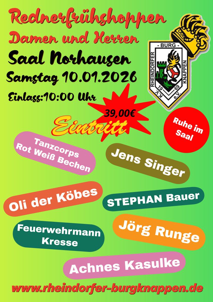Es geht wieder los. Wir haben für Euch tolle Sitzungen mit Spitzenprogramm. Neu dabei der gemischte Rednerfrühschoppen am 10.01. oder der Herren Rednerfrühschoppen am 11.01. Hier wird herzhaft gelacht und den Rednern der nötige Respekt geboten.